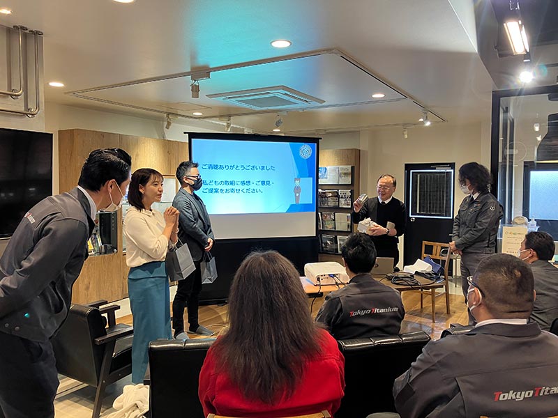 最後は株式会社ホリエ様のチタン製タンブラーを贈呈。